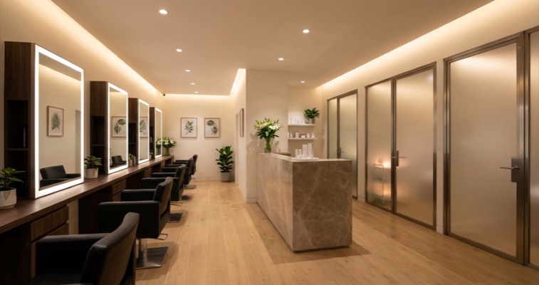 - Separation between wet and dry areas — hairdressing basins create moisture and noise; beauty treatments need quieter, calmer spaces